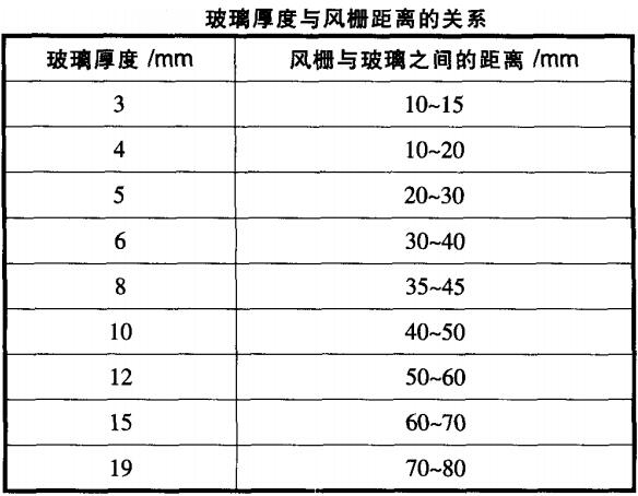 玻璃在鋼化爐風冷段進行冷卻時,風柵與玻璃間的距離對施加在玻璃表面的風壓將產生影響,當吹風時的風壓定時,風柵與玻璃之間的間距變小,施加到玻璃表面的風壓將相對增大,其碎片數量、機械強度和安性能都會得到提高;反之 ,如果風柵與玻璃之間的間距增大,施加到玻璃表面的風壓將相對減小,玻璃鋼化后表面獲得較小的應力,其碎片數量 、機械強度、安性能就會相對較差;當鋼化時的風壓不變時,定程度上我們可以通過調節(jié)風柵與玻璃之問的距離來達到調節(jié)鋼化玻璃質量的目的,但也不能味地調小風柵與玻璃間的距離 ,距離過小將加大鋼化后玻璃表面出現應力斑。不同厚度的玻璃的風柵與玻璃之間的距離調節(jié)范圍可參照下表進行玻璃鋼化爐冷卻過程工藝參數的設定 。